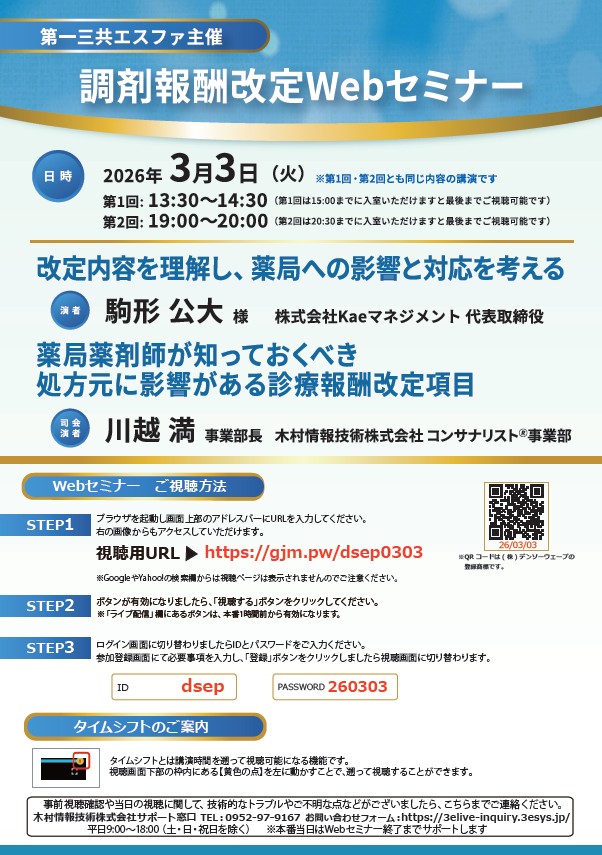 東海大学医学部付属病院薬剤部では、医師などと作成した、「心不全チェックシート」に「お薬手帳貼付シール」を加えることで、薬局薬剤師と共に慢性心不全患者を支援する舞台を整えた。本セミナーでは、当薬剤部が推進している「心不全チェックシート」の立ち位置と「お薬手帳貼付シール」の運用意義を解説しながら、患者へ繰り返し説明することの大切さと、地域連携で心不全患者を支援することの重要性をお伝えしたい。